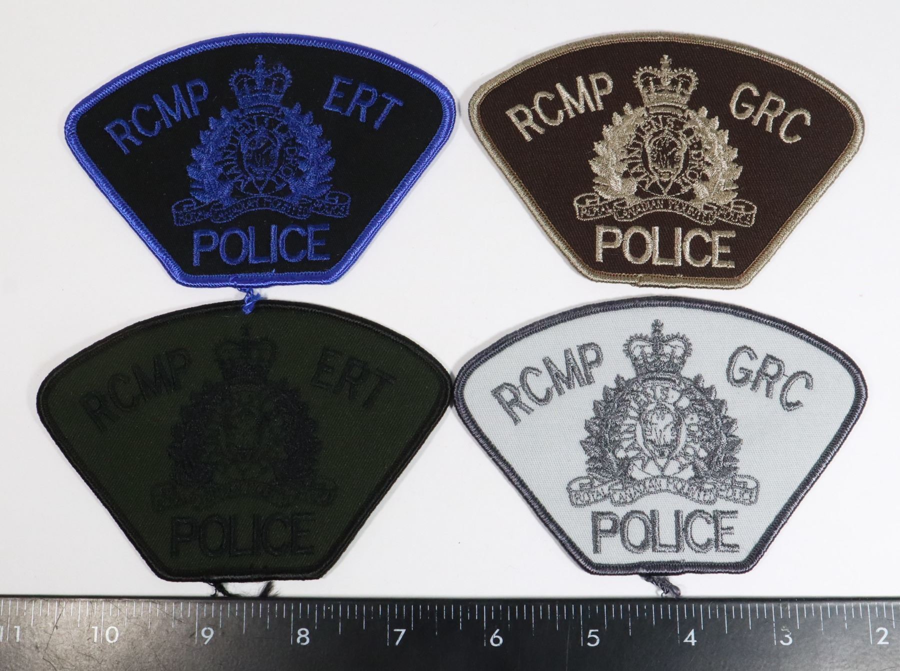 FOUR DIFFERENT COLOUR PATTERNS ROYAL CANADIAN MOUNTED POLICE VINTAGE POLICE LAW ENFORCEMENT PATCH BADGE INSIGNIA