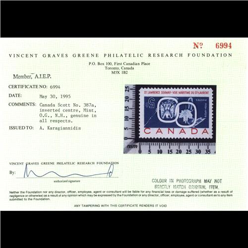 #387a XF-NH INVERTED SEAWAY VARIETY C$15,000,00 & CERTIFICATION