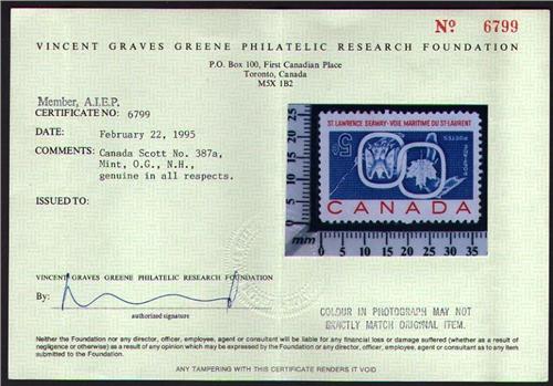 #387a XF-NH INVERTED SEAWAY VARIETY C$15,000,00 & CERT
