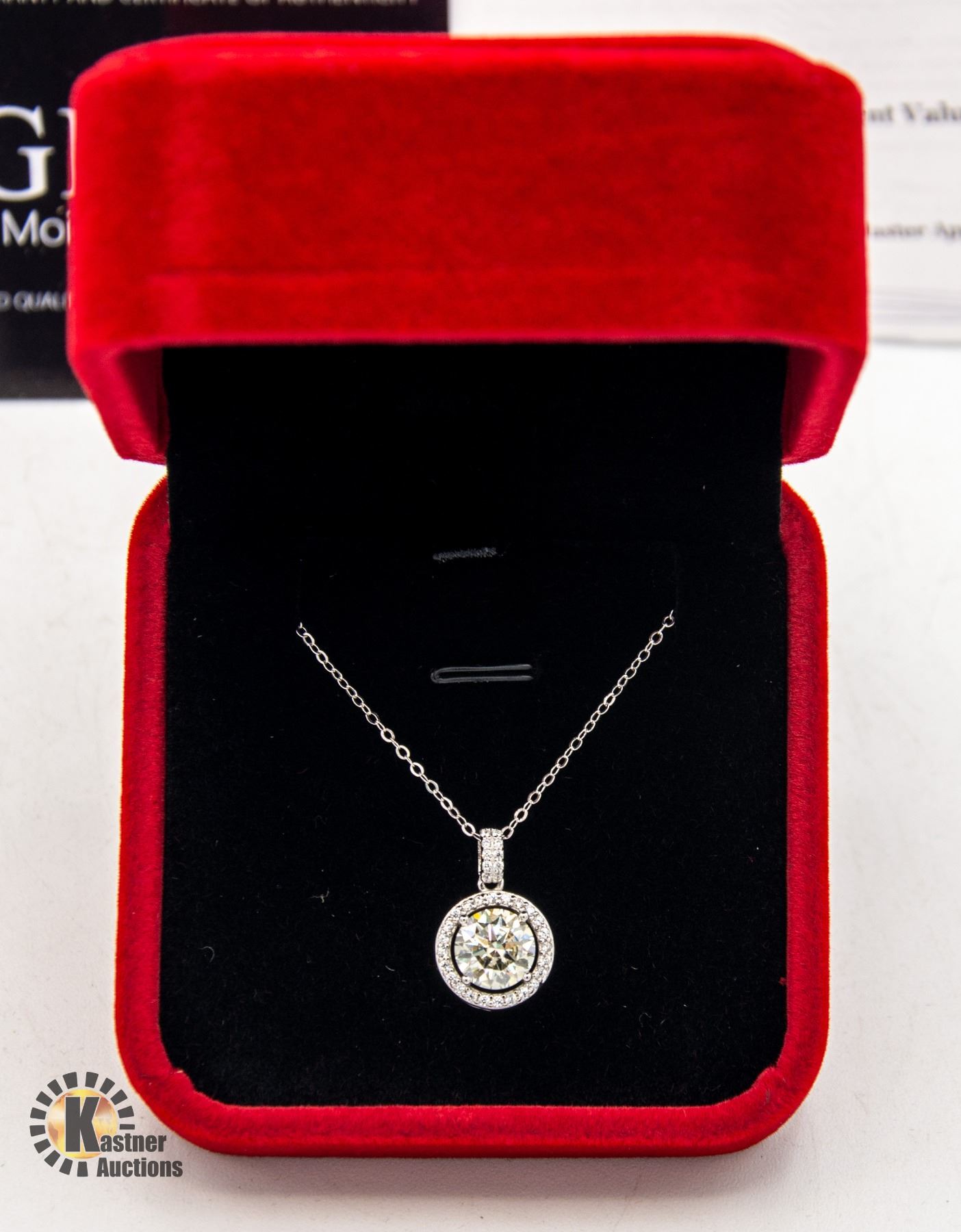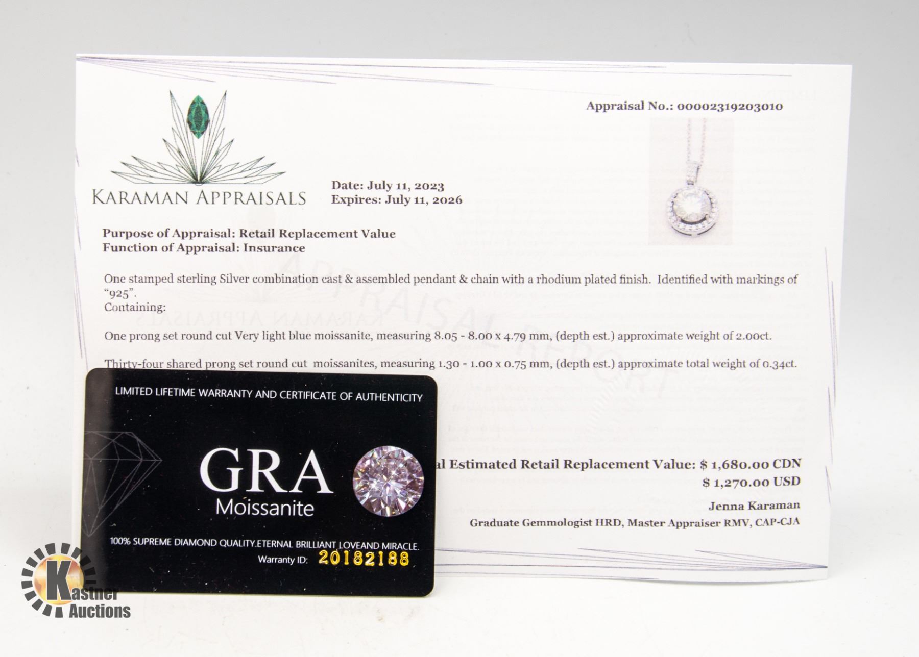 APPROX. 2.00 CARAT WITH 34 CUBIC ZIRCONIUM IN HALO IN PENDANT AND WITH MORE IN BAIL. GRA CERTIFIED APPRAISED VALUE $1,680.00