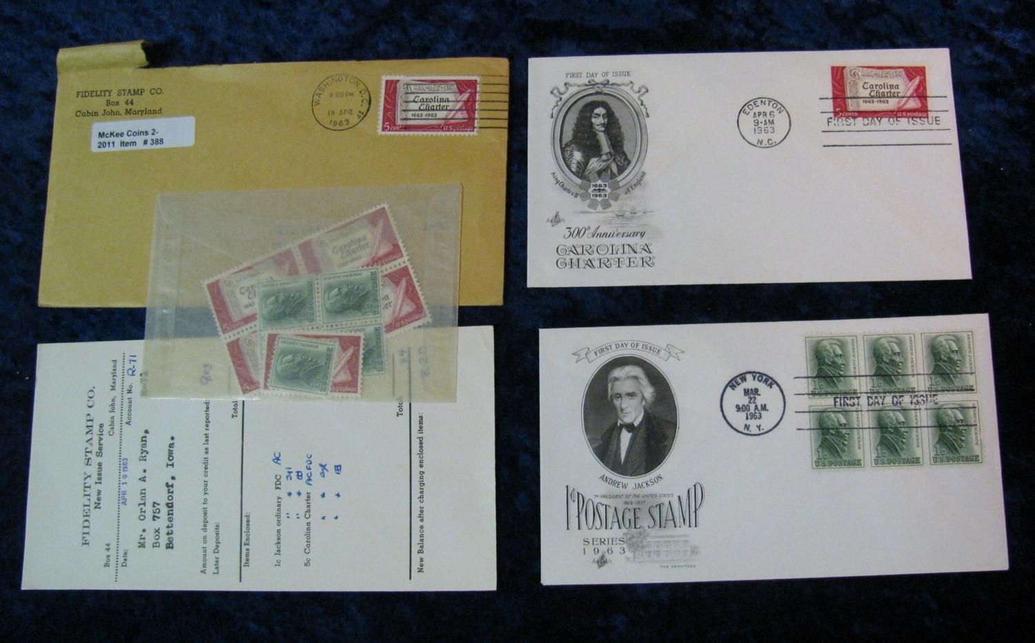 388. Pair of Mint 1963 First Day Covers and a group of Mint U.S. postage stamps from the same era.