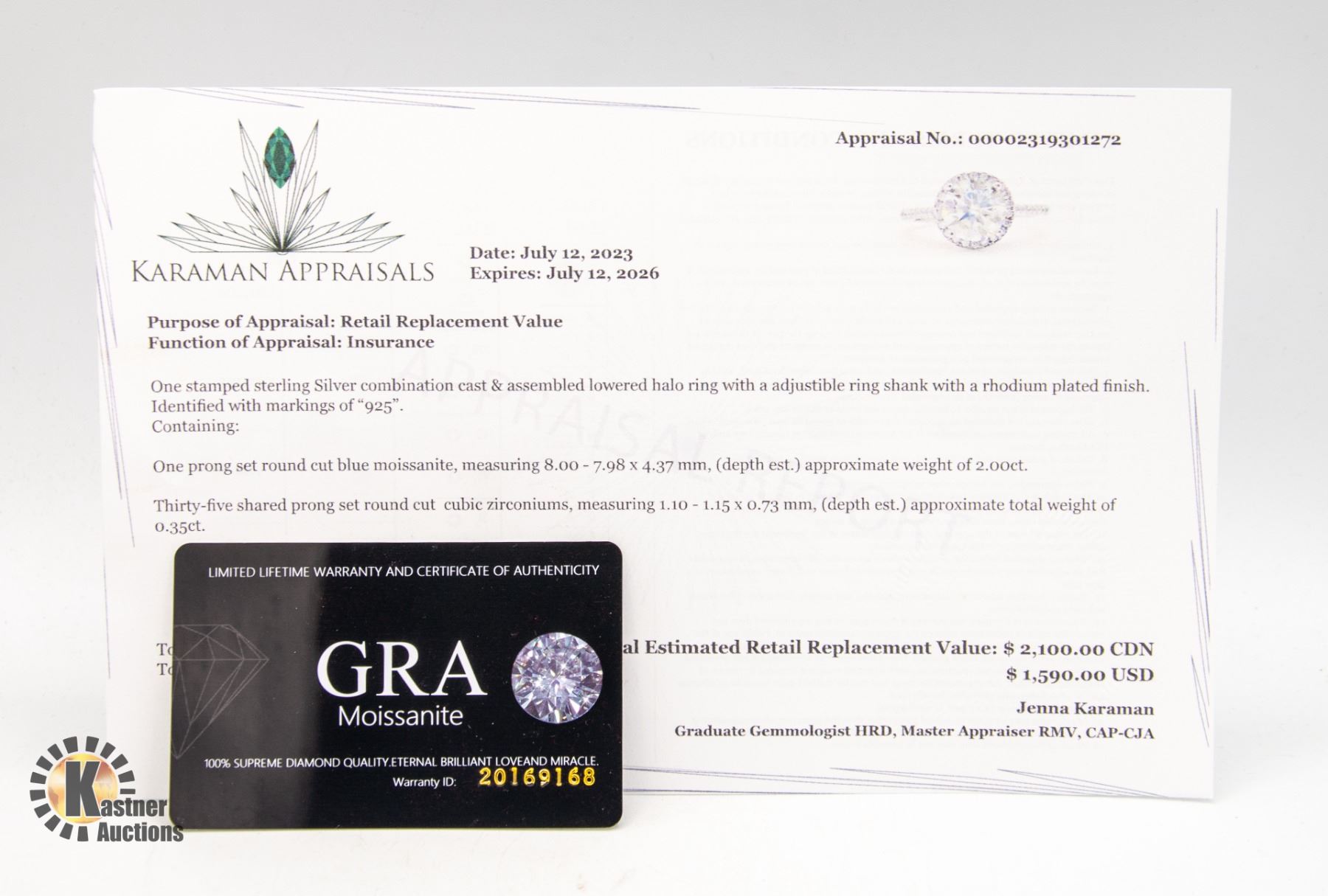 2.00 CARAT WITH 35 CUBIC ZIRCONIUM IN HALO AND WITH MORE IN SHANK OF RING GRA CERTIFIED SIZE 7 APPRAISED VALUE $2,100.00