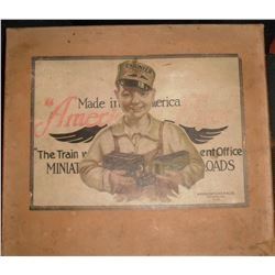 Oh surely about 100 years old is as is this 1920's or so antique mint toy with side of box sticker "Cat No1217 Made In America American Flyer Electric Railroads Mrg Co Chicago Ilinois USA" ; wow, it's an antique toy train with original utmostly rare thick box (worth over 500$) with the big on top sticker with smilling happy handsome young boy holding a toy train, and with its literature in it, as well as with its electric motor ; original colours, mint all including one on both sides is written 'United States Mail Pailway Post Office' on that car with the two doors working as you slide them, all cars are tin metal, all wheels are metal too and work, with original colours too; for connaisseurs, collect or give this rare find (not on Ebay) ; collect or give this magnificent toy, as this was for millionnaires and / or billionnaires - note too that the back of the Observation car has a sticker marked 'Flyer Limited' likely for limited edition of this Pennsylvania Broadway Limited marked on sides as well on each of the 3 cars, plus on the electric the BELL is still there on the last car for observation ; and that 4th car is marked '3011' on one side in brass colour and on the other side 'American Flyer Lines' in brass colour ; too the original light bulb is on the back of it for observation having also its LIGHT : the original electric BULB on that 'caboose' !!! Information : in 1908, Edmonds-Metzel adopted the 'American Flyer' brand name for the trains ; by 1910, they were out of the hardware business and changed its name to 'American Flyer Manufacturing Company'. In 1918, American Flyer introduced its FIRST electric train, an 'O' gauge model that was simply a windup model with an electric motor replacing the clockwork motor. This one at auction is an CHIGAGO as at that time the administration offices and factory of the American Flyer Manufacturing Co. were located at 2219-2239 South Halsted Street in CHICAGO. In 1925, American Flyer started to offer WIDE gauge electric trains at a PREMIUM price and this way attempted to compete with the Lionel Corporation at the HIGH END of the market ; for you or give this exquisite so rare mint toy of great much intriguing refinnements !!!