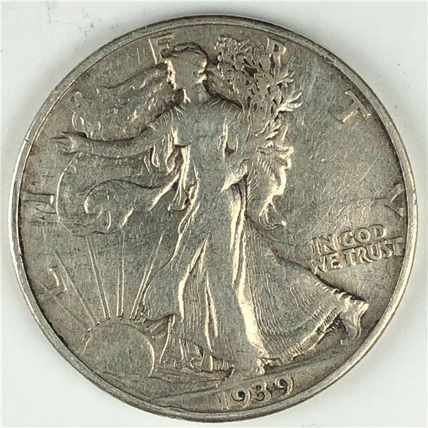 1939 D US Half Dollar VF1043 - 1939 D US Half Dollar VF