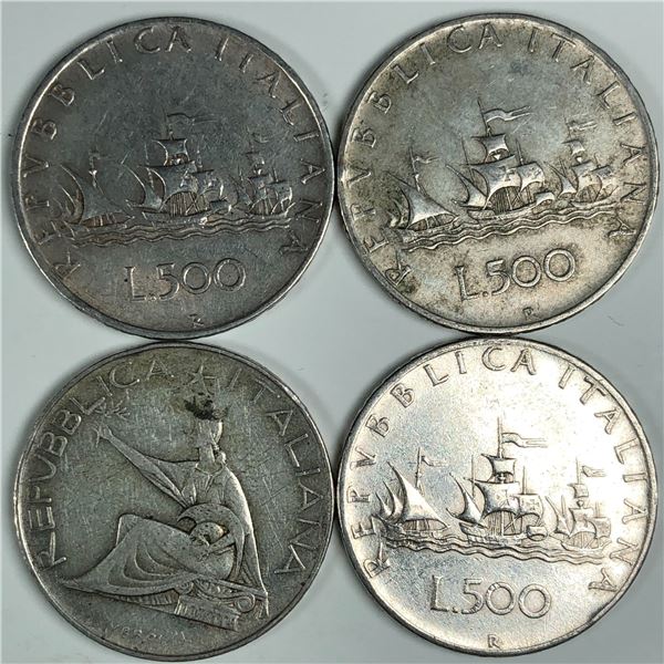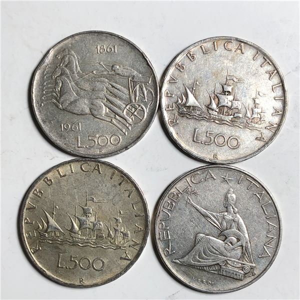 Lot of 4 Italian 500 Lira 83% silver approx. 44grams1048 - Lot of 4 Italian 500 Lira 83% silver approx. 44grams