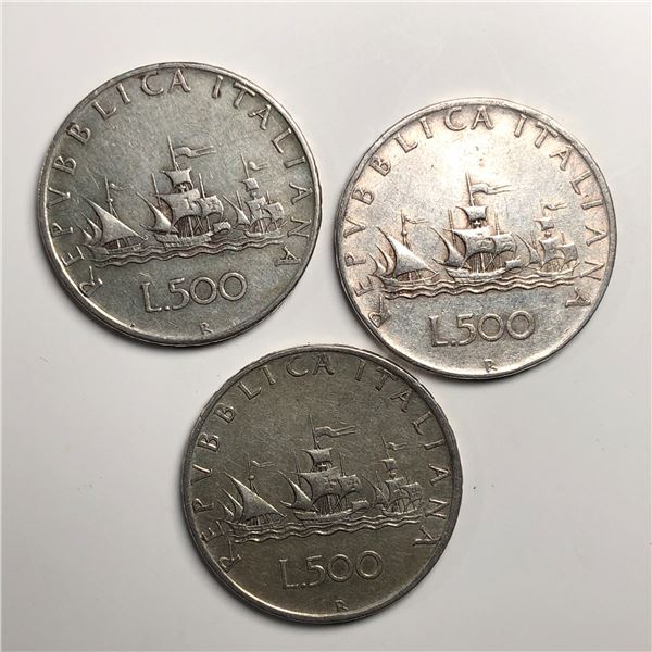 Lot of 3 Italian 500 Lira 83% silver approx. 33grams1050 - Lot of 3 Italian 500 Lira 83% silver approx. 33grams