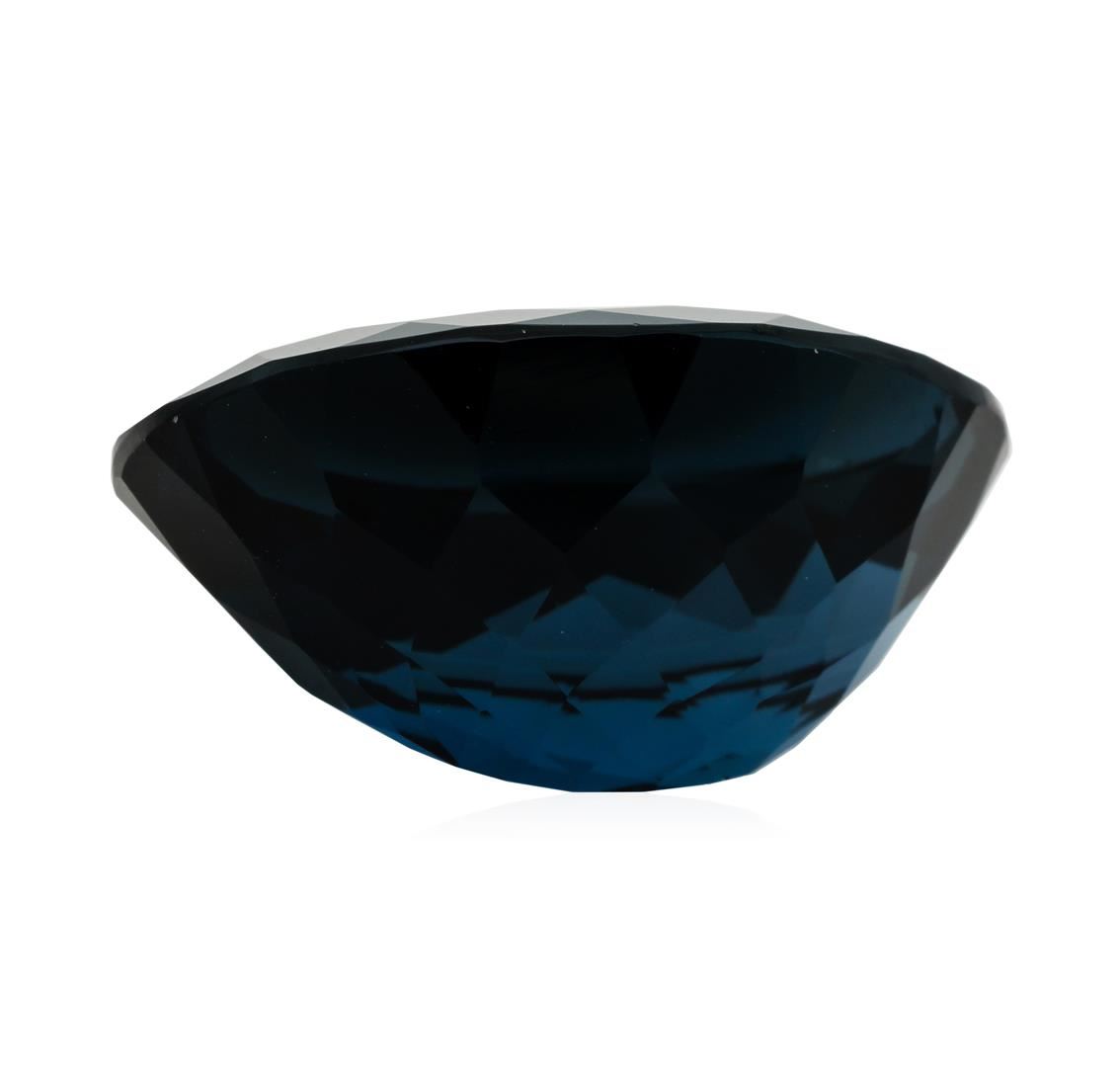 One natural oval cut london blue topaz with an exact weight of 39.00ct., clarity is eye clean, greenish blue, dark. Gemological Appraisals Services estimates the retail value at $780 GAS Appraised.