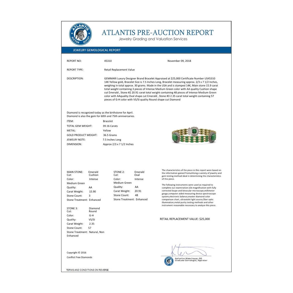 39.16 ctw Emerald & Diamond Bracelet 14K Yellow Gold