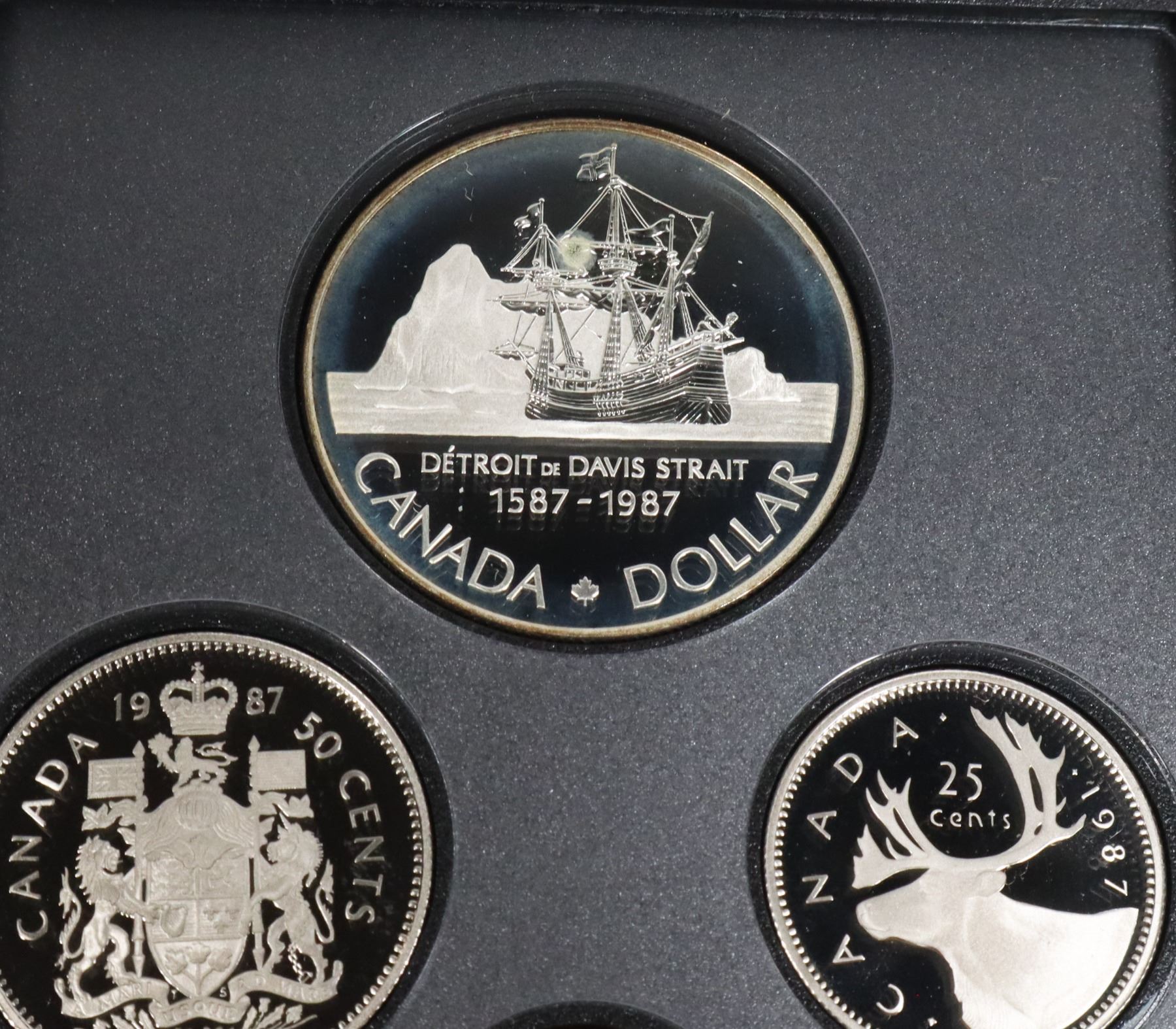 INCLUDES SILVER DOLLAR + VOYAGEUR DOLLAR CANADIAN CURRENCY 7 COIN SET WITH CERTIFICATE OF AUTHENTICITY DETROIT DAVIS STRAIT