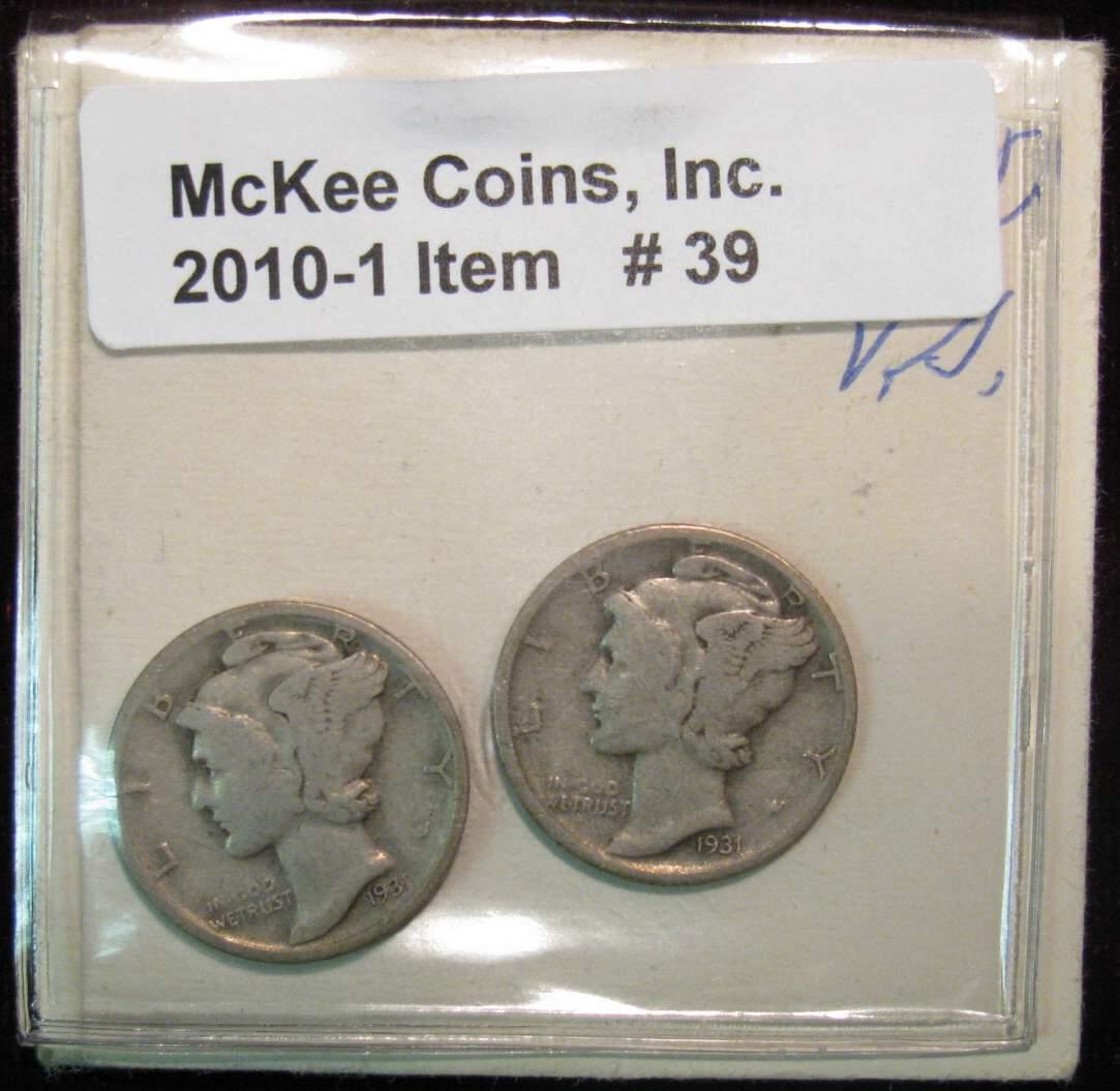 39. (2) 1931 D Mercury Dimes. VG. Redbook $16.00.