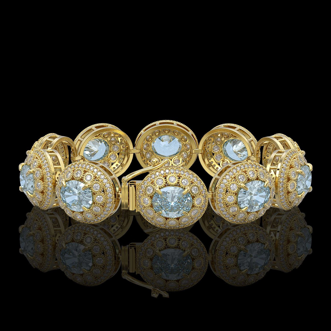 REF-1218W2H - SKU: 43723 ---- 39.82 ctw Aquamarine & Diamond Victorian Bracelet 14K Yellow Gold