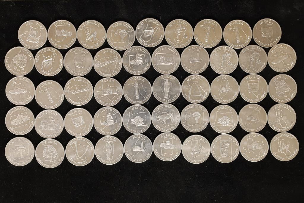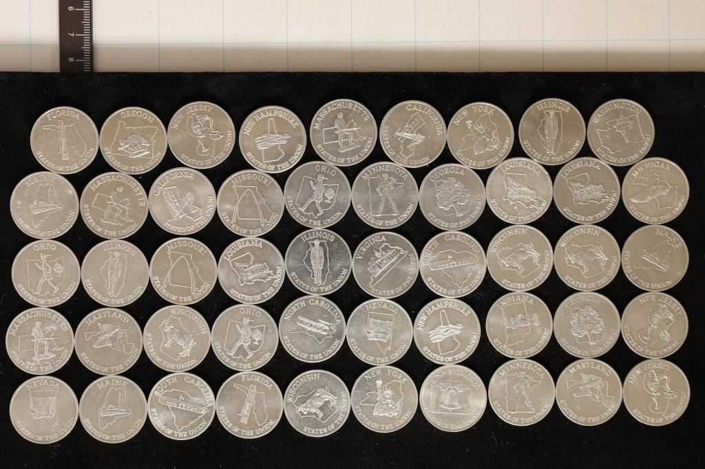 GAMING TOKENS: EACH TOKEN HAS A DIFFERENT STATE ON THE OBVERSE AND REVERSE. ALL BRILLIANT UNCS. THIS IS THE STATE OF THE UNION SET WHICH IS VERSION #2