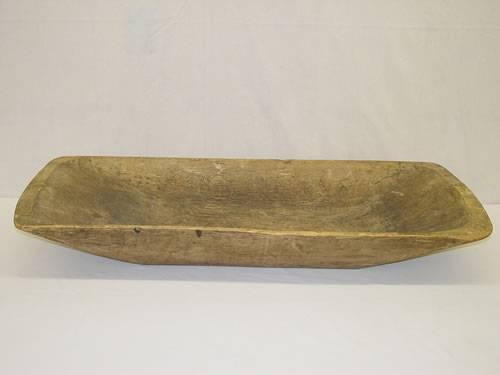 39" CARVED WOODEN TRENCHER BOWL - SMALL SPLITS IN THE SIDES and CHOPPING CUTS;