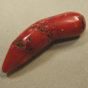 FREE FORM BAMBOO RED CORAL PIECE. IT WEIGHTS 39 CTS AND MEASURES 37x11 MM APPROXIMATELY. TOP DRILLED