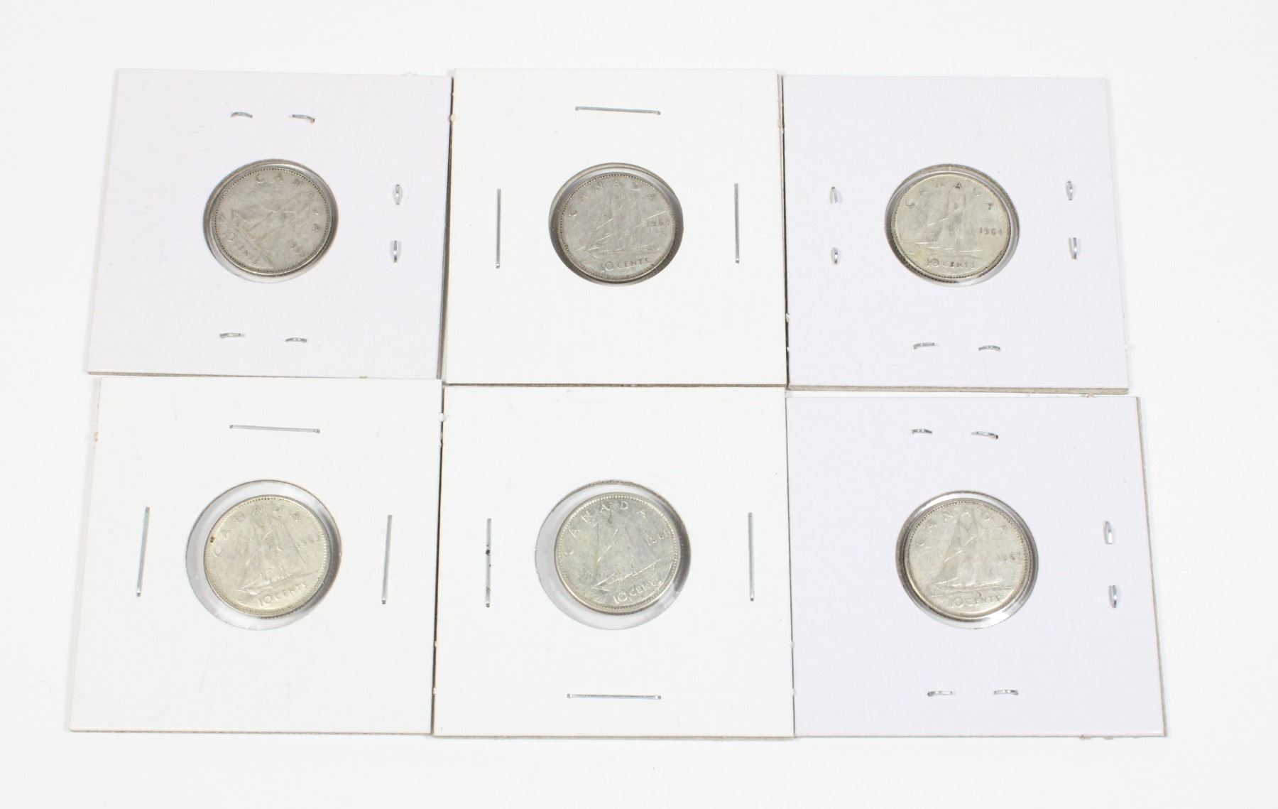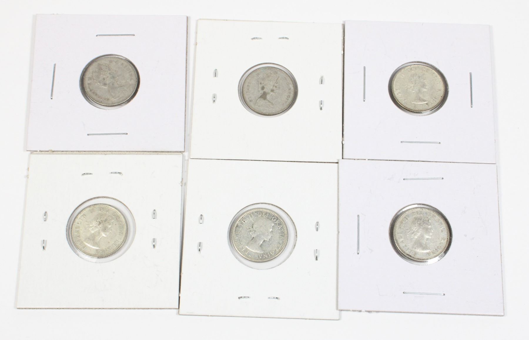 ASSORTED YEARS 1961 1962 1963 1964 1965 1968 LOT OF 6 CANADIAN CANADA SILVER COINS 10 CENTS DIME QUEEN ELIZABETH II QEII