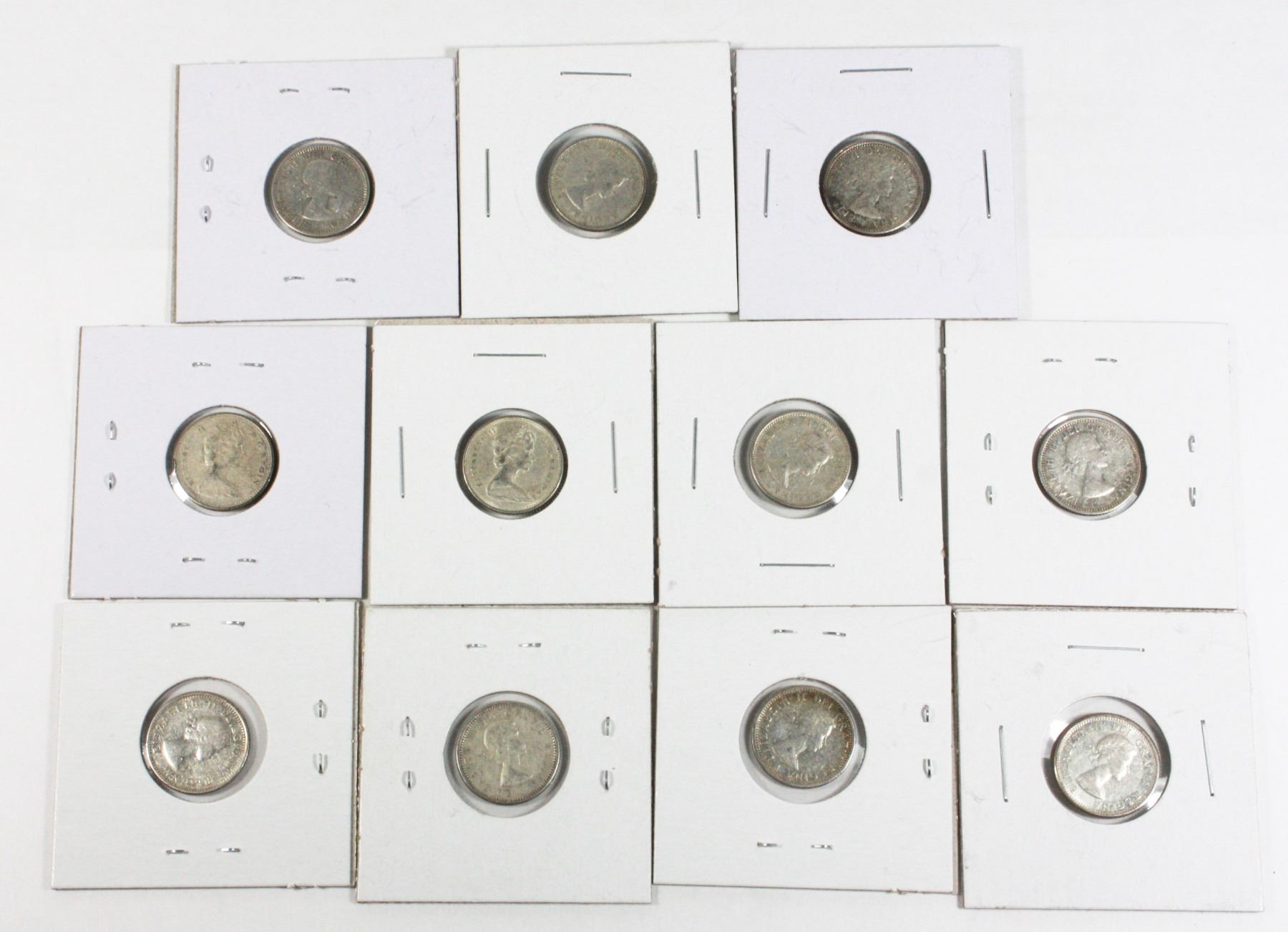 ASSORTED YEARS 1960 1962 1963 1964 1965 1966 1967 LOT OF 11 CANADIAN CANADA SILVER COINS QUEEN ELIZABETH II QEII