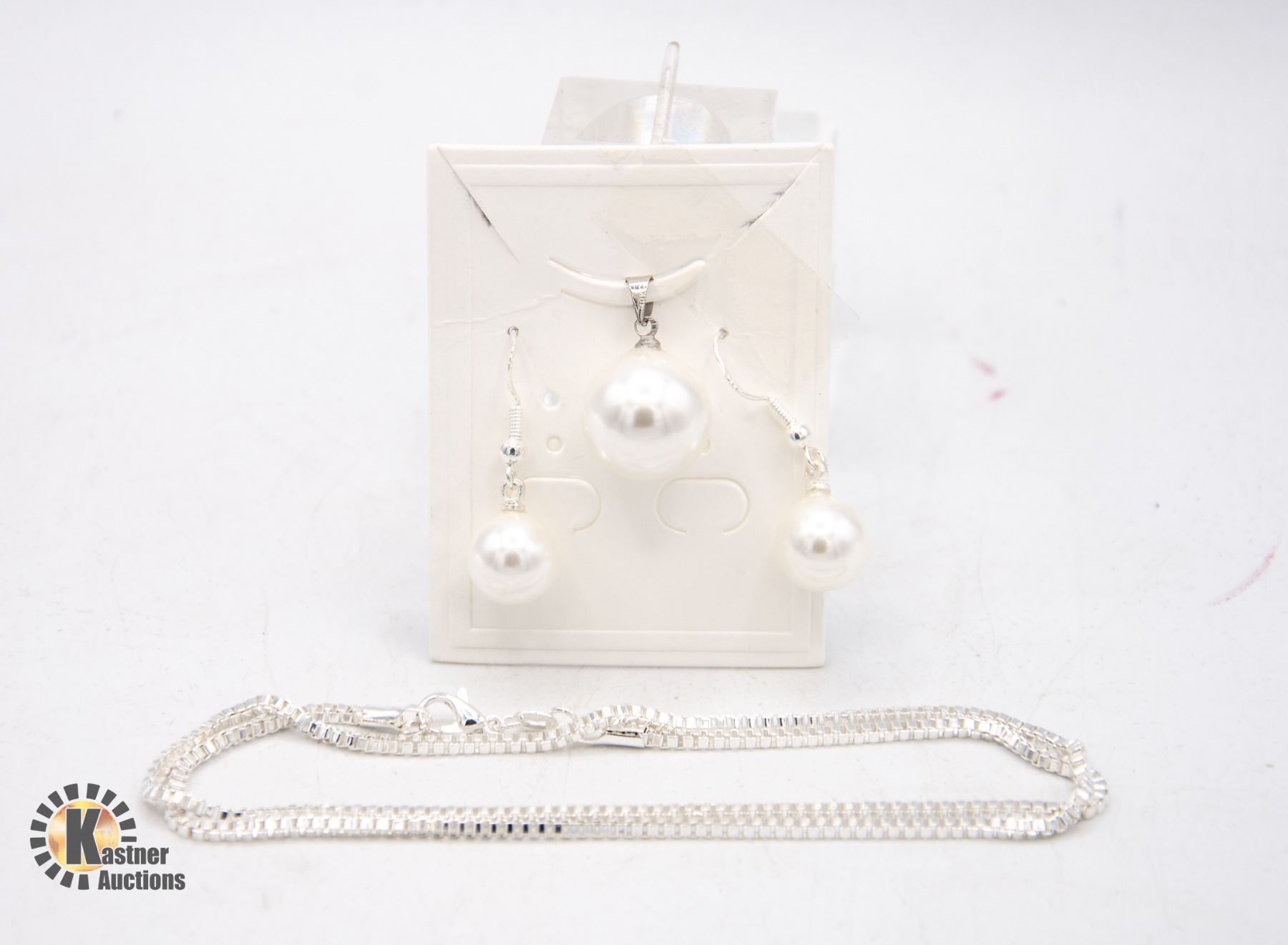 #39-SEA SHELL PEARL EARRINGS,PENDANT, NECKLACE SET
