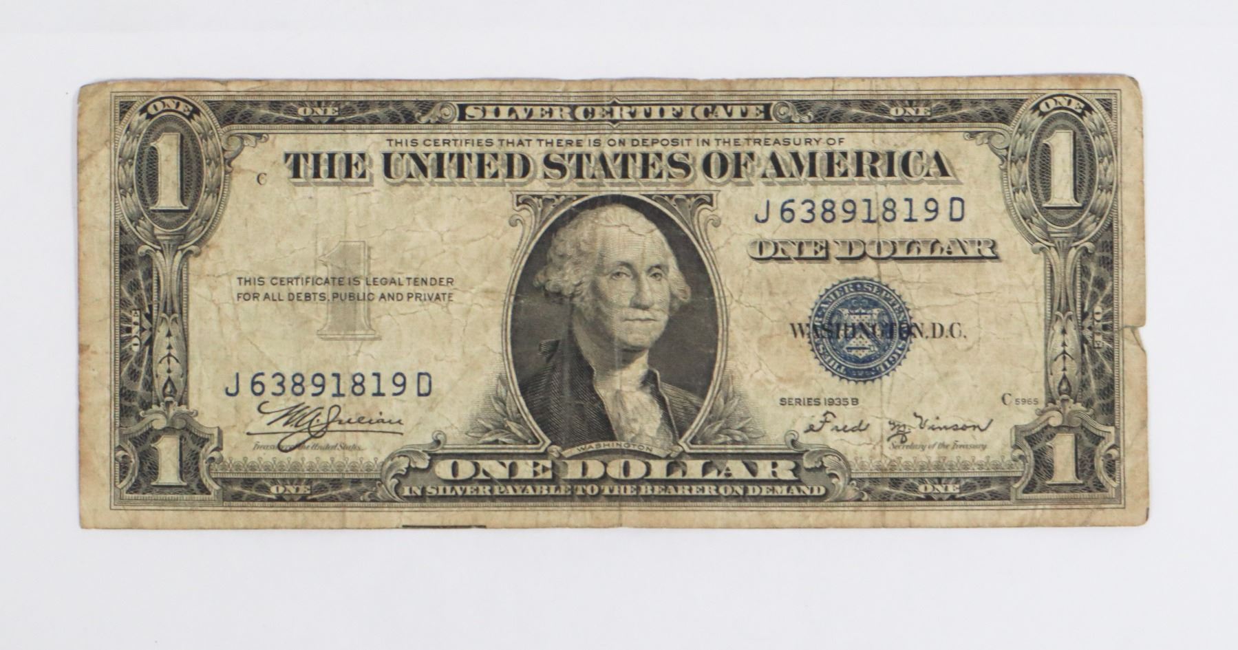 SILVER CERTIFICATE BLUE SEAL UNITED STATES OF AMERICA CURRENCY PAPER MONEY BANKNOTE WORN CONDITION