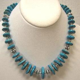 STABILIZED TURQUOISE NECKLACE. IT WEIGHTS 390 CTS. LENGTH 16 INCHES. SILVER PLATED