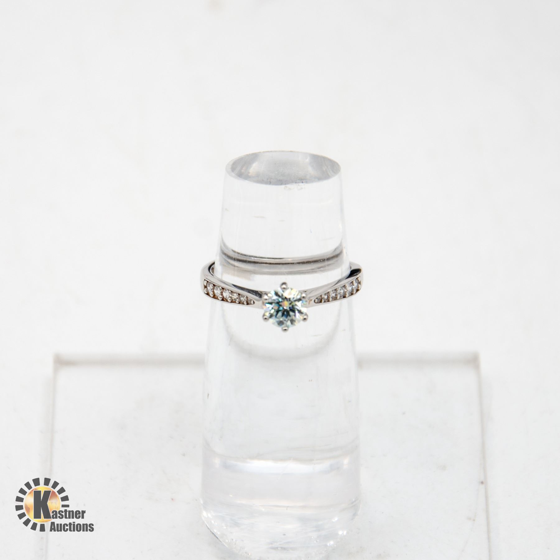 IN THE CENTER WITH 18 CUBIC ZIRCONIA SET IN THE SKI TIP SHANK WEIGHING APPROX. 0.10 CTS TW GRA CERTIFIED SIZE 6.5 APPRAISED VALUE $825.00