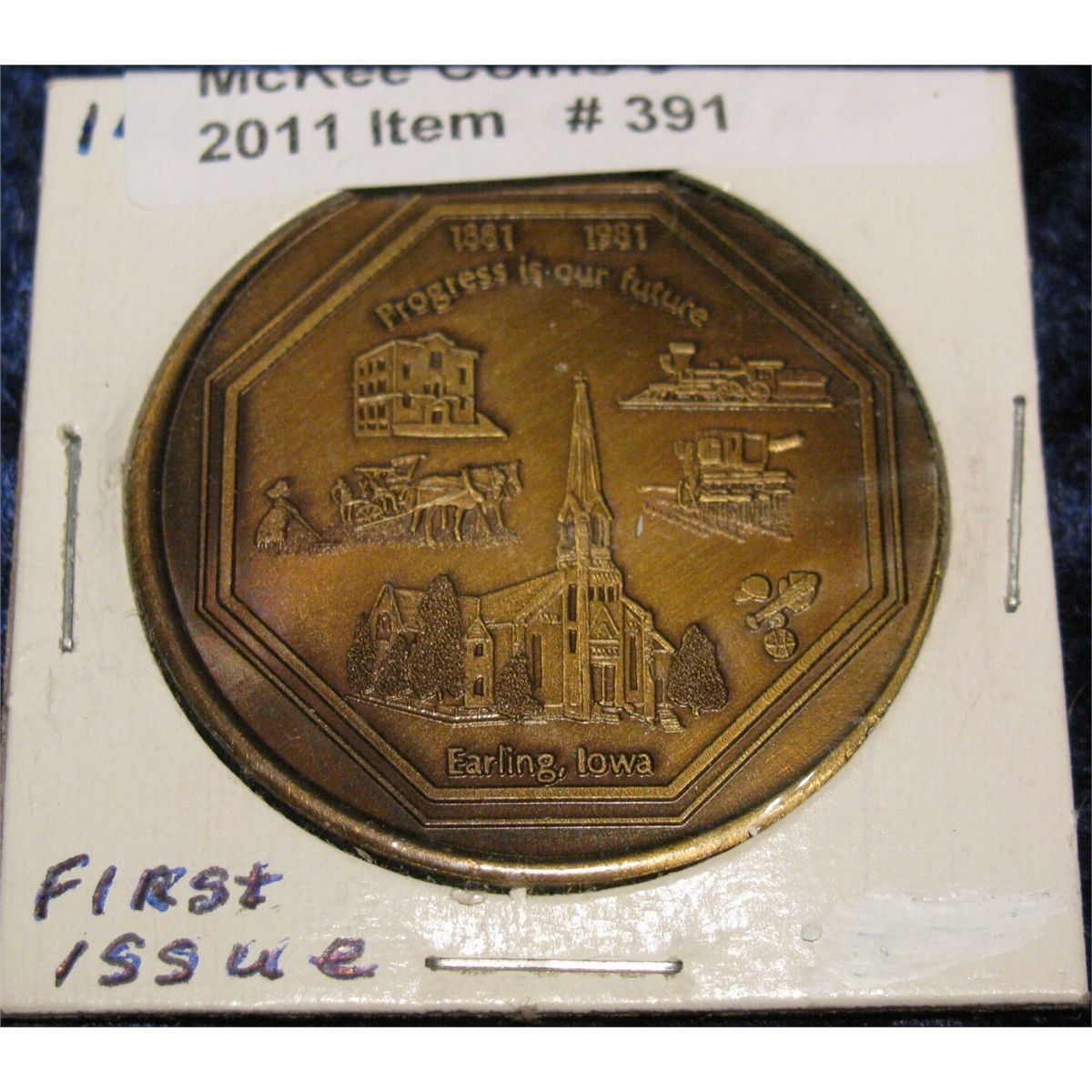 391. 1881-1981 Earling, Iowa First Issue Centennial Medal. Brass. 39mm. BU.