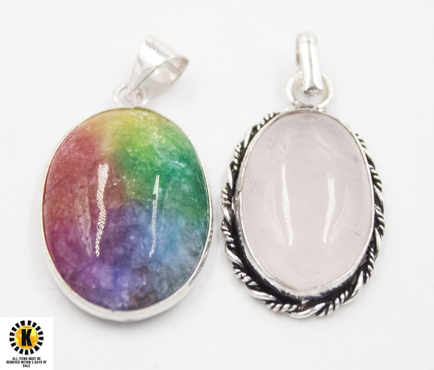 HEALING MINERAL /SILVERPLATE /2 PCS /RAINBOW SOLAR QUARTZ