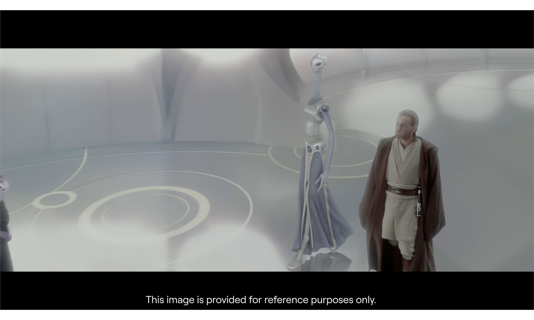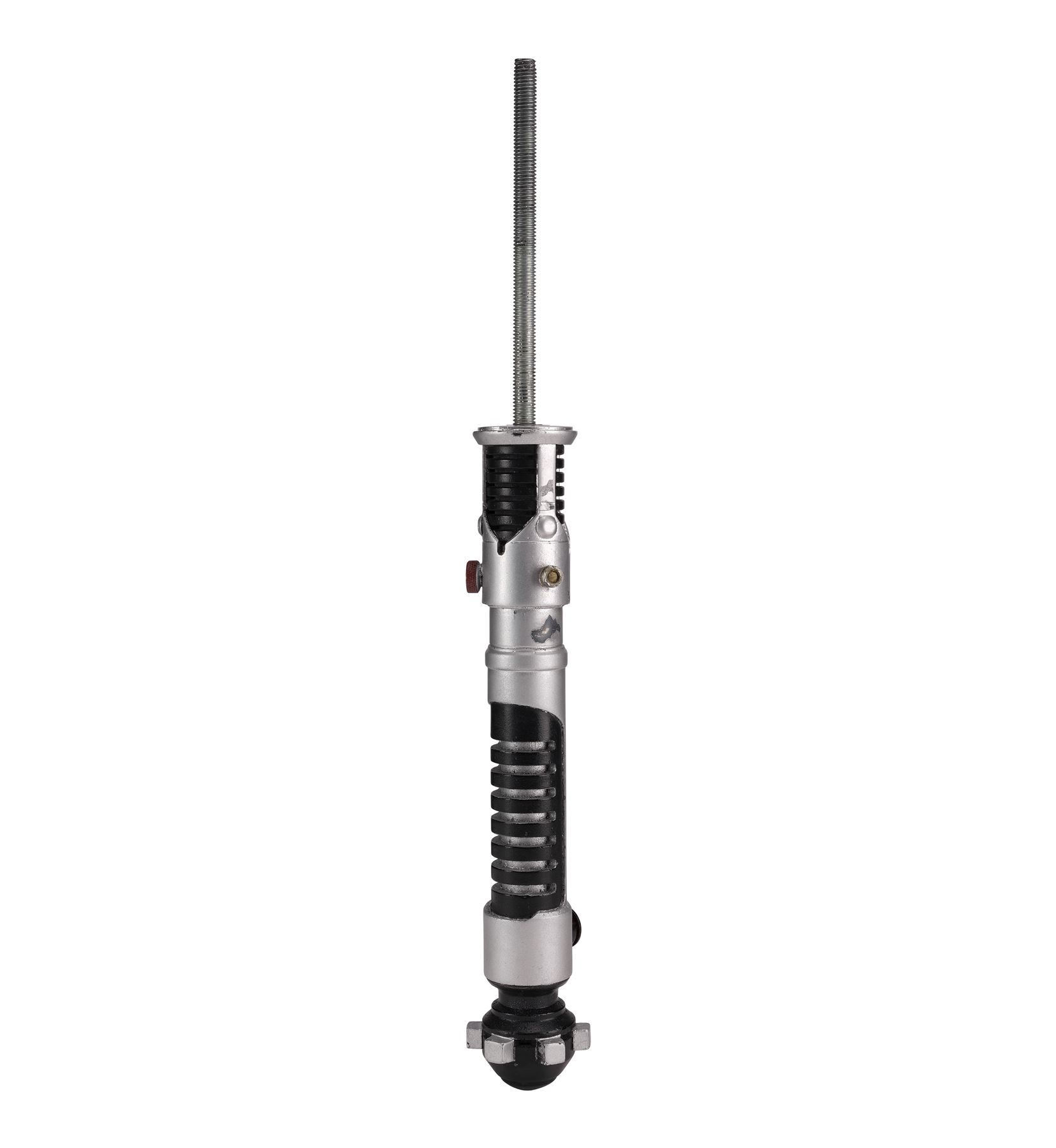 STAR WARS: ATTACK OF THE CLONES (2002) - Obi-Wan Kenobi's (Ewan McGregor) Dueling Lightsaber Hilt with Production-Made Blade - Obi-Wan Kenobi's (Ewan McGregor) dueling lightsaber hilt from George Lucas' Star Wars: Attack of the Clones with a blade from the production of The Phantom Menace. Jedi Master Obi-Wan wielded his signature blue lightsaber throughout both films, with the version he used during his fight with Jango Fett (Temuera Morrison) on Kamino a reconstruction of the lightsaber he used to duel Darth Maul (Ray Park).