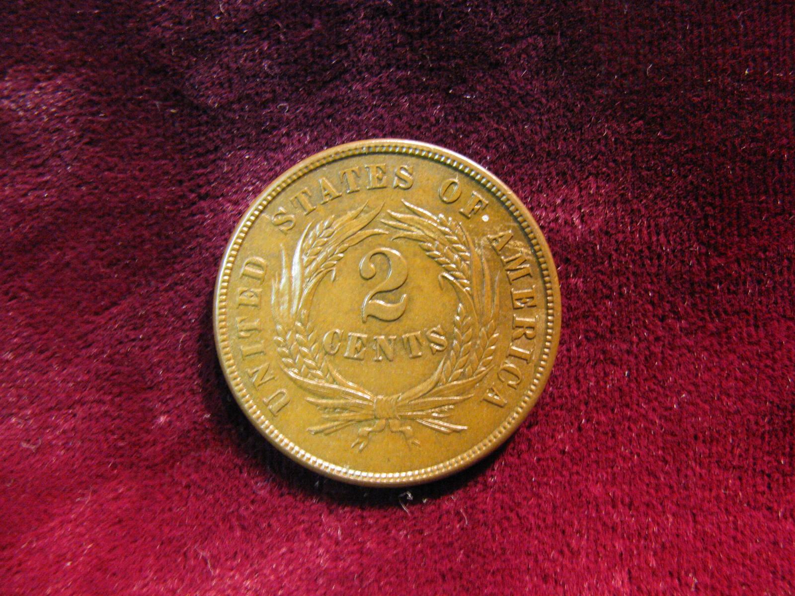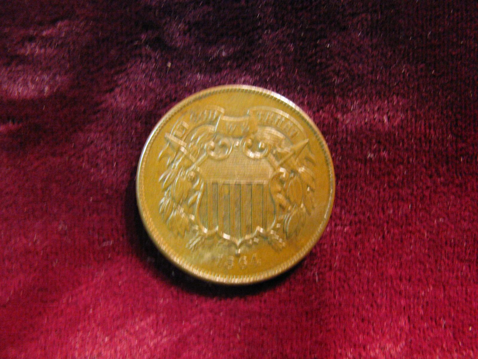 3911. 1864 U.S. Two Cent Piece. Nice AU-BU.