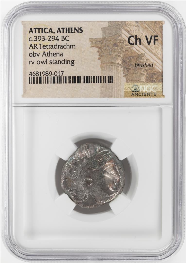 One 393-294 BC Attica Athens AR Tetradrachm Athena Owl Coin NGC CH VF. NGC Certified.