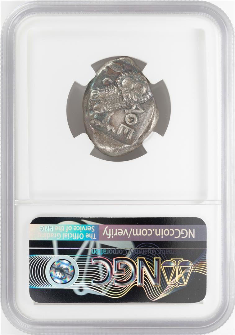 One 393-294 BC Attica Athens AR Tetradrachm Athena Owl Coin NGC CH VF. NGC Certified.