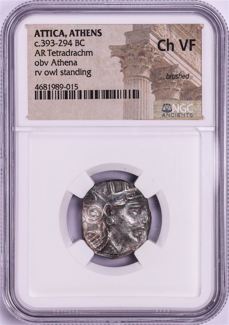 One 393-294 BC Attica Athens AR Tetradrachm Athena Owl Coin NGC CH VF. NGC Certified.