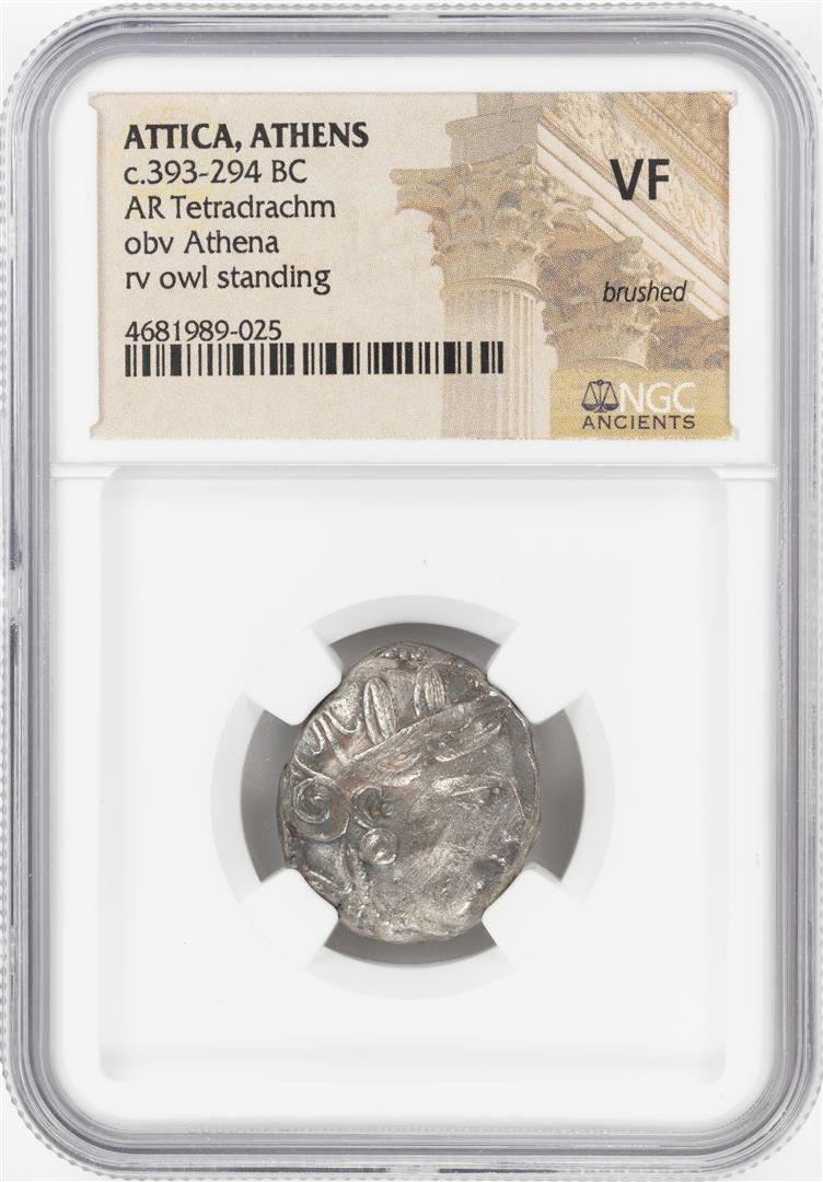 One 393-294 BC Attica Athens AR Tetradrachm Athena Owl Coin NGC VF. NGC Certified.