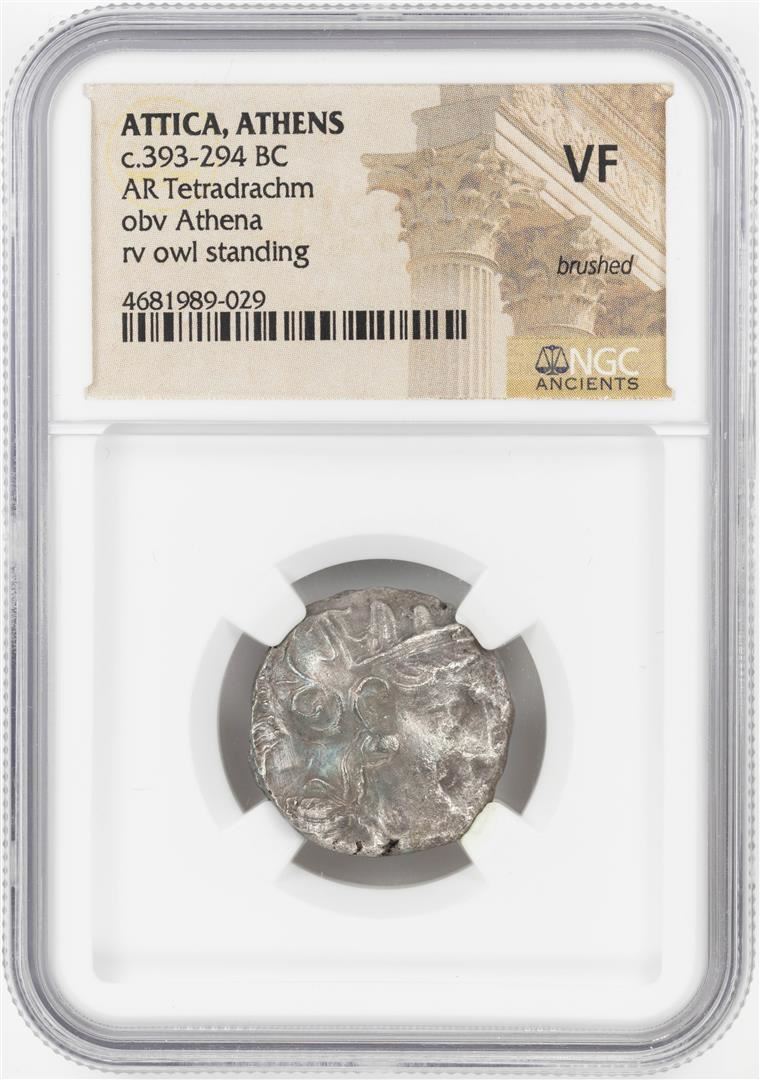 One 393-294 BC Attica Athens AR Tetradrachm Athena Owl Coin NGC VF. NGC Certified.