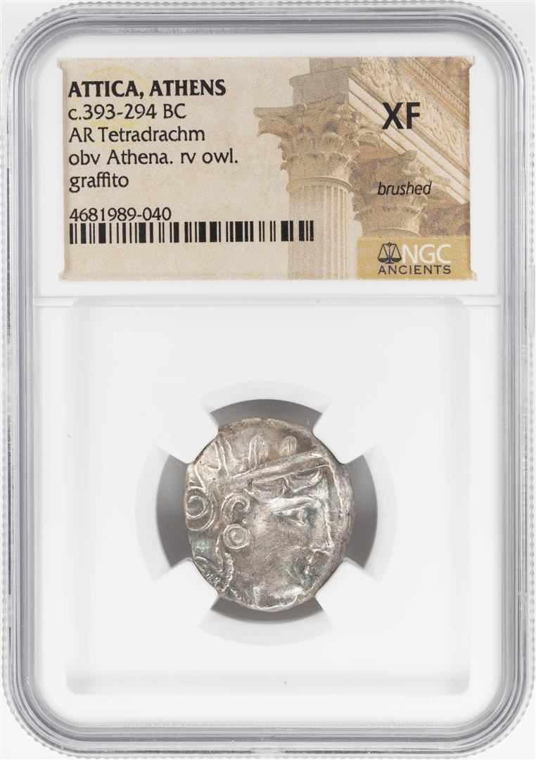 One 393-294 BC Attica Athens AR Tetradrachm Athena Owl Coin NGC XF. NGC Certified.