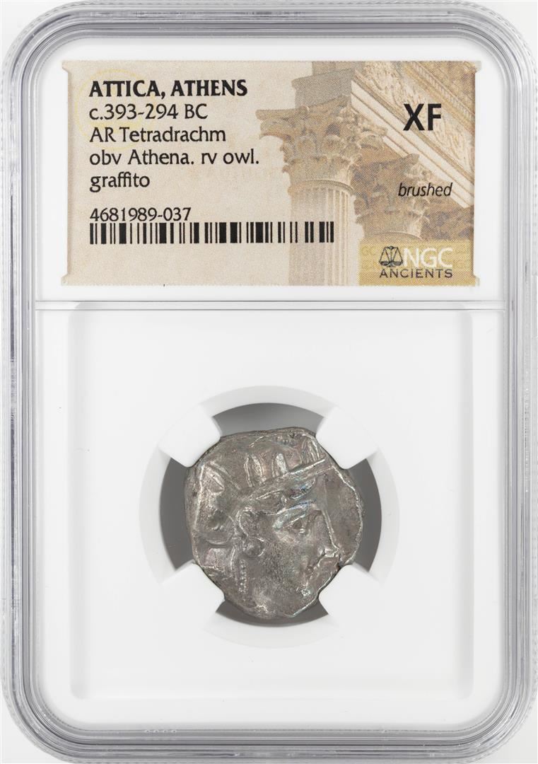 One 393-294 BC Attica Athens AR Tetradrachm Athena Owl Coin NGC XF. NGC Certified.
