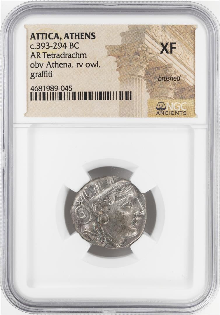 One 393-294 BC Attica Athens AR Tetradrachm Athena Owl Coin NGC XF. NGC Certified.