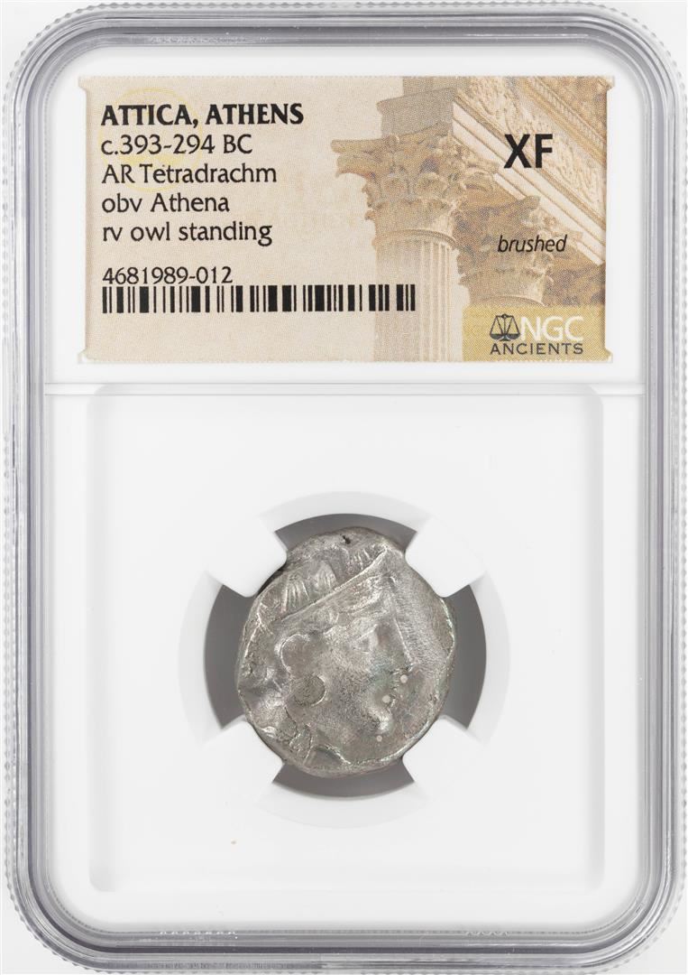 One 393-294 BC Attica Athens AR Tetradrachm Athena Owl Coin NGC XF. NGC Certified.
