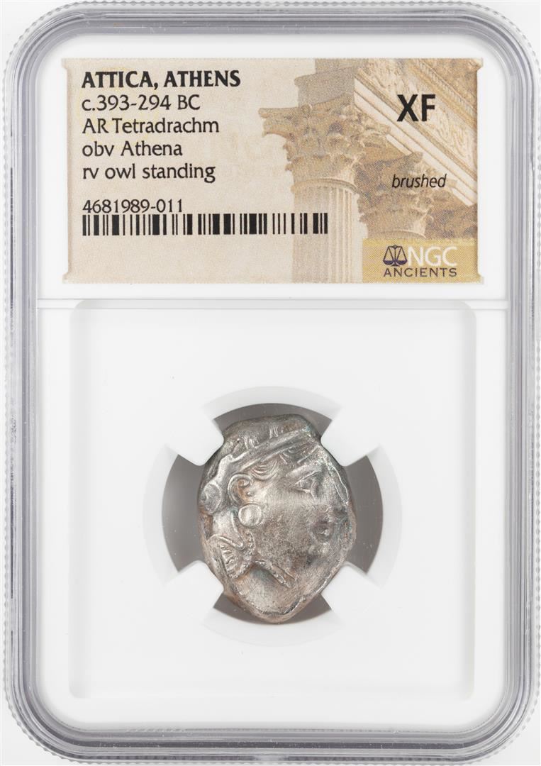 One 393-294 BC Attica Athens AR Tetradrachm Athena Owl Coin NGC XF. NGC Certified.