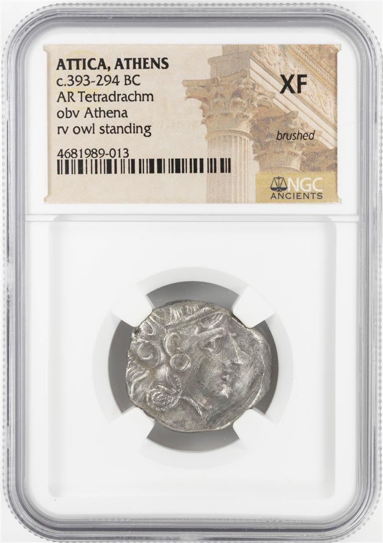 One 393-294 BC Attica Athens AR Tetradrachm Athena Owl Coin NGC XF. NGC Certified.