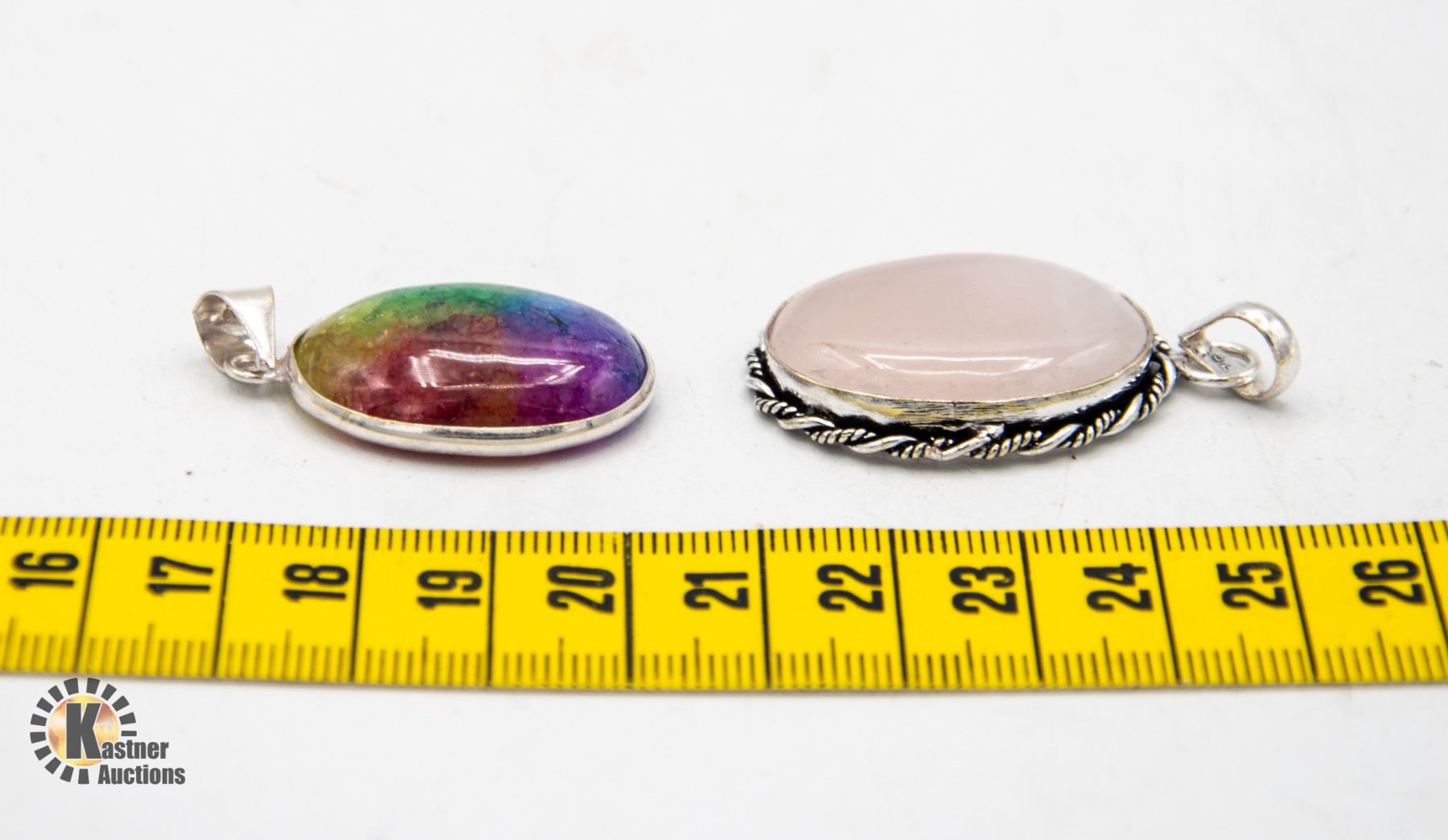#394-NATURAL ROSE QUARTZ ,RANBOW SOLAR QZ  PENDANT