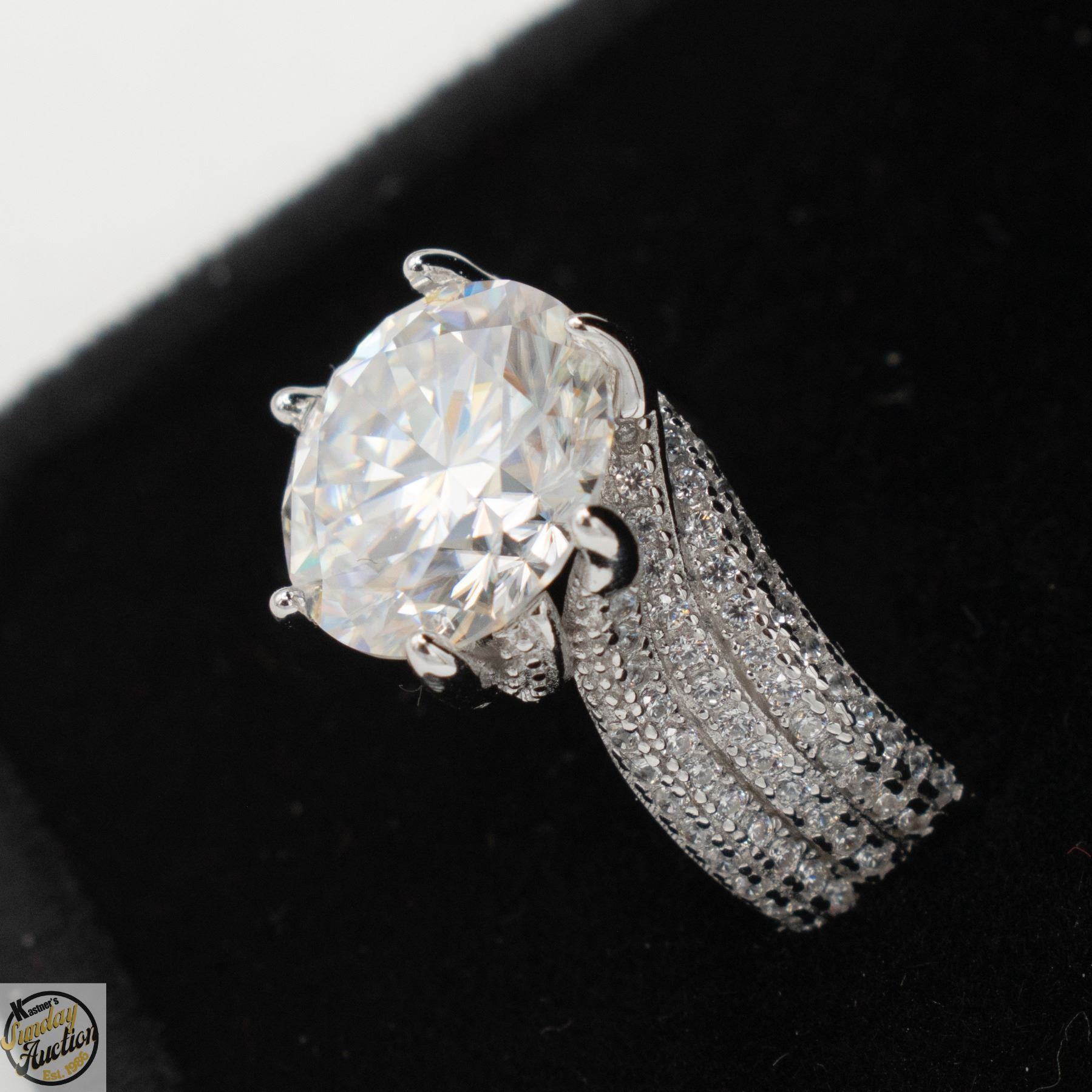 CUT MOISSANITE STONE VVS D COLOR SET WITH 130 ROUND BRILLIANT CUT CUBIC ZIRCONIA’S SET IN 925 SILVER RING SIZE 7 RETAIL VALUE $1,475.00 **ALL ITEMS MUST BE REMOVED BY 5PM SATURDAY, MARCH 28TH 2026. ALL REMAINING ITEMS WILL BE SUBJECT TO A $6.00 PER DAY STORAGE CHARGE. ANY ITEMS REMAINING AFTER MONDAY, APRIL 20TH 2026 WILL BE CONSIDERED FORFEITED. NO REFUNDS WILL BE ISSUED FOR FORFEITED ITEMS. TO SCHEDULE A PICK UP APPOINTMENT CLICK HERE