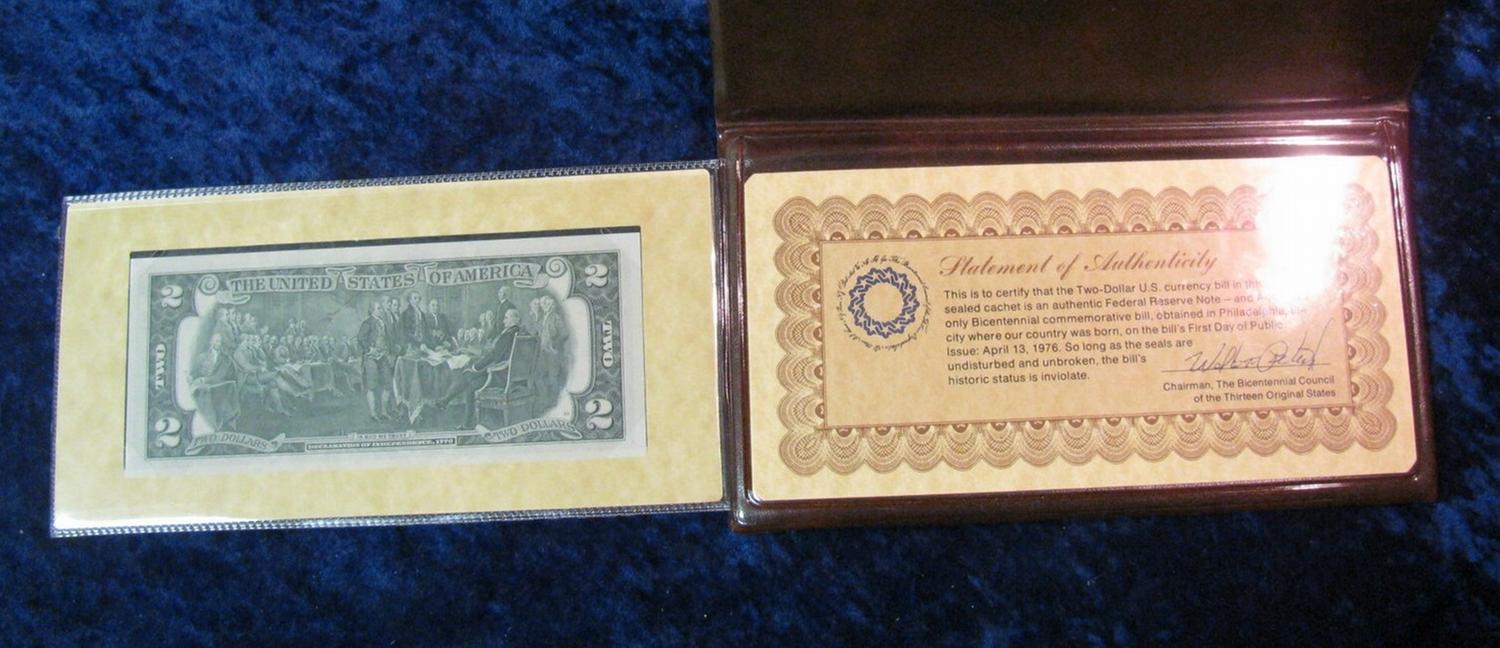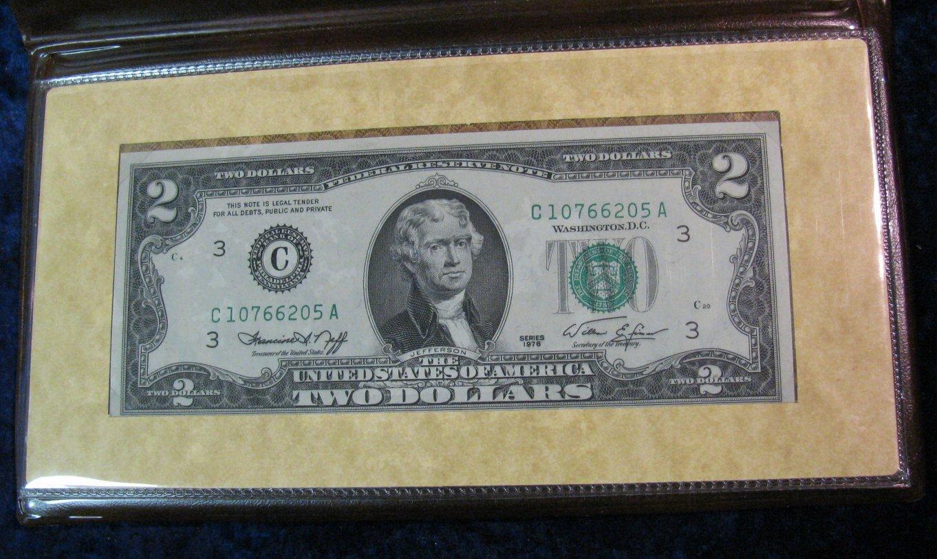 397. Series 1976 $3 Bicentennial Commemorative Note in a special holder. Crisp Unc.