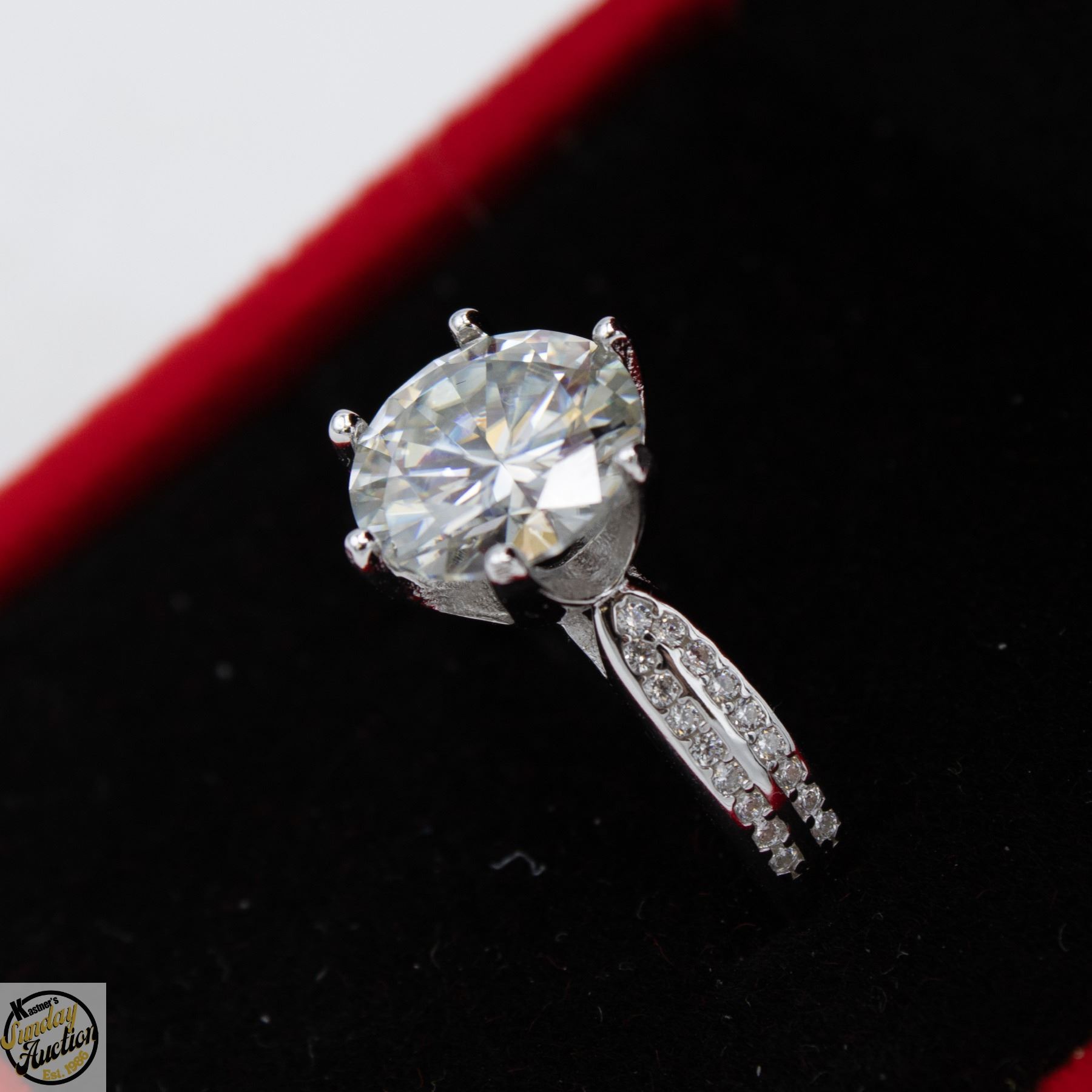 CUT MOISSANITE STONE VVS D COLOR WITH 34 ROUND BRILLIANT CUT CUBIC ZIRCONIA SET IN 2 ROWS IN SHANKS SET IN 925 SILVER RING SIZE 5 RETAIL VALUE $1,275.00 **ALL ITEMS MUST BE REMOVED BY 5PM SATURDAY, MARCH 28TH 2026. ALL REMAINING ITEMS WILL BE SUBJECT TO A $6.00 PER DAY STORAGE CHARGE. ANY ITEMS REMAINING AFTER MONDAY, APRIL 20TH 2026 WILL BE CONSIDERED FORFEITED. NO REFUNDS WILL BE ISSUED FOR FORFEITED ITEMS. TO SCHEDULE A PICK UP APPOINTMENT CLICK HERE