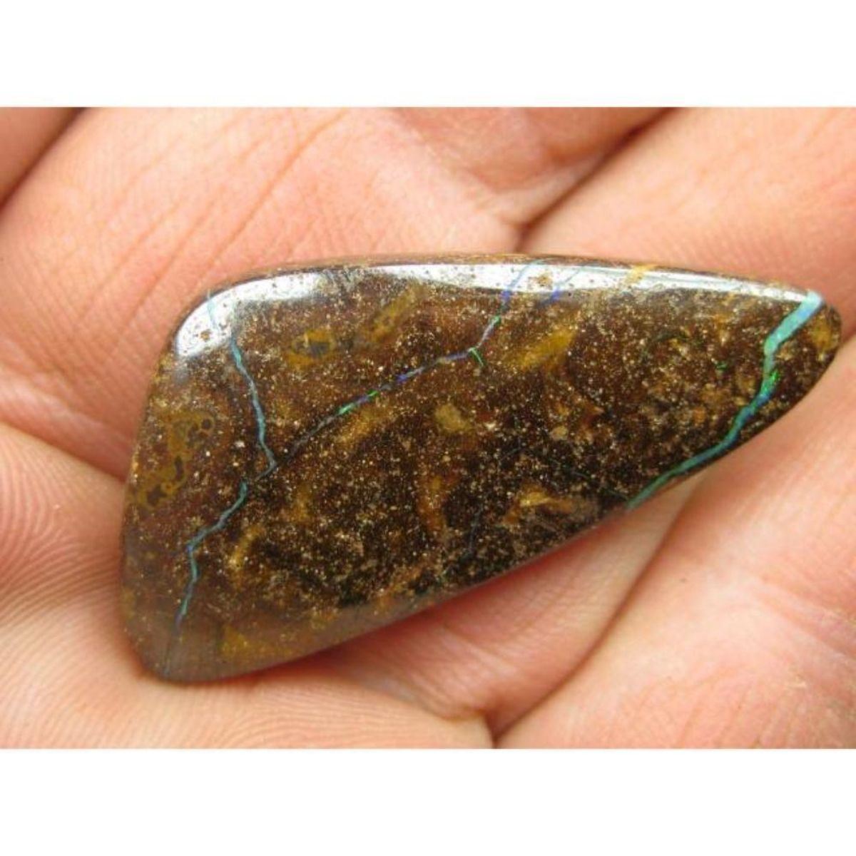 TYPE OF OPAL…...............BOULDER OPAL/UNTREATED. FIELD/ORIGIN…................QUEENSLAND AUSTRALIA. COLOUR…..........................AS PER IMAGE. PATTERN….........................AS PER IMAGE. NO OF PIECES….........................1. BRIGHTNESS RATING 1 TO 5. =3.8. DESCRIPTION….........................LOVELY VEINED PATTERN BOULDER OPAL. (opal colour and pattern as per image, the stone you see in pictures is the stone you get.)  Additional General Details about Opals to Inform the Knowing Bidder: Opal is a hydrated amorphous form of silica (SiO2·nH2O); its water content may range from 3 to 21% by weight, but is usually between 6 and 10%. Because of its amorphous character, it is classed as a mineraloid, unlike crystalline forms of silica, which are classed as minerals. It is deposited at a relatively low temperature and may occur in the fissures of almost any kind of rock, being most commonly found with limonite, sandstone, rhyolite, marl, and basalt. Opal is the national gemstone of Australia. The internal structure of precious opal makes it diffract light. Depending on the conditions in which it formed, it can take on many colors. Precious opal ranges from clear through white, gray, red, orange, yellow, green, blue, magenta, rose, pink, slate, olive, brown, and black. Of these hues, the black opals are the rarest, whereas white and greens are the most common. Opals vary in optical density from opaque to semi-transparent and show opalescence, a form of iridescence. There are 9 separate factors that contribute to the price of an Opal. These factors are: Color Direction / Play of Color Pattern Body tone Brightness Shape Inclusions Where the Opal was mined Country of Origin At Lightning Ridge, in Australia, a committee values opal miner’s opals each Saturday. Several opal appraiser price each opal by carat with the final value determined by the price per carat. COLOR In order of evaluation value, the most valuable color is a dominant red, then orange, green, blue and purple. Electric blue Opals is the most valuable of the blues. DIRECTION OF COLOR Opals are a gemstone that dramatically change appearance based on the angle of view. When an Opal is at it’s brightest, this is called its ‘facing’/ andle. The direction of color will affect the price because it determines how versatile the Opal is. PATTERN Opals that have a rare or unique pattern are more valuable. The Harlequin patternis the rarest and most loved pattern in opals but it is very rare. A True harlequin pattern is a mosaic broad pattern, angular close set of colors. Floral patterns are sometimes called floral harlequin.Some top patterns are Mackerel, Block, Broad flash, Rolling-flash, Pin-fire, Rainbow and most sought out Ethiopian opal is the Honeycomb pattern. BODY TONE Opals are grouped in 9 sub categories N1 to N9 with N1 the darkest opal and N9 the lightest. Black opals are generally the most valuable and have a body tone of N1 to N4 Opals with N5 to N6 considered a semi black or dark opal. Body tone N7 to N9 are called crystal opals. BRIGHTNESS The Opal brightness guide was produced by the Australian opal association along with the body tone guide. There are 7 sub Brightness ratings with B1 the brightest to B7 the dullest. The brighter the Opal, the more expensive will be its value. SHAPE Oval stone are generally considered more valuable than free form, except with boulder opals where free form is considered desirable. The shape of the Opal once again determines how versatile it is. Oval stones generally have the best face of color and can be used in a variety of applications. Opal is almost always cut in a cabochon. A cabochon stone is more valuable when it has a high. This is due to the fact that cabochons make ideal ring stones. INCLUSIONS Inclusions and potch lines and are not to be confused with cracks. A crack line reflects light and greatly devalues an Opal. A potch line has no light reflection and these opals are generally valued lower but can make artistic picture patterns. Some Opals will have a vegetation pattern from the inclusions and this is popular as the opal has replaced some of the tree or vegetation. Sand or windows also reduce the value of the opal. A window is a gap on the bottom where potch has not formed and opal is transparent. Ethiopian opal can have a ghost or phantom inclusions or vegetation matter. These types of inclusions are generally accepted as reasonable in this type opal. OPAL FIELD SOURCE The end buyer or wholesaler might not be able to consider this factor. But in the trade certain mines have a reputation of producing good quality rough that makes excellent stones. This happens in Australian and Ethiopian opal fields. Even the depth of the mine can greatly effect value. Opal doublets and triplets do not have the same stringent criteria as solid opals and are valued considerable less. It is important to be able to pick a doublet opal compared to a solid and this can be difficult when the opal is set into jewelry. COUNTRY OF ORIGIN Australia has a worldwide reputation as the world’s most expensive opals. Many countries now produce good opals like Ethiopia, Mexico and Brazil. Each country’s opals may be unique and this factor helps determine the Opal price. Regardless of the country of origin, all opals are rare, valuable and unique. Opal Stones rank very high as an appreciating asset.  - #1249-042319-CM-3-358