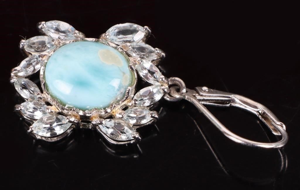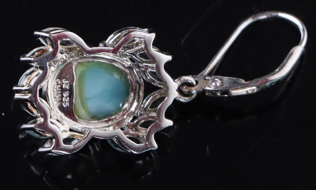 3ct blue Larimar & amp; quarts sterling silver dangle earrings.