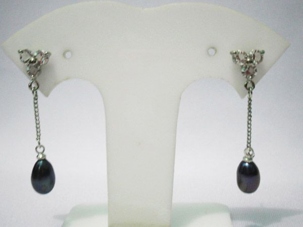 3CZ DANGLING TEARDROP BLACK PEARL EARRINGS **|**|** 3CZ DANGLING TEARDROP BLACK PEARL EARRINGS ; MSRP: $75