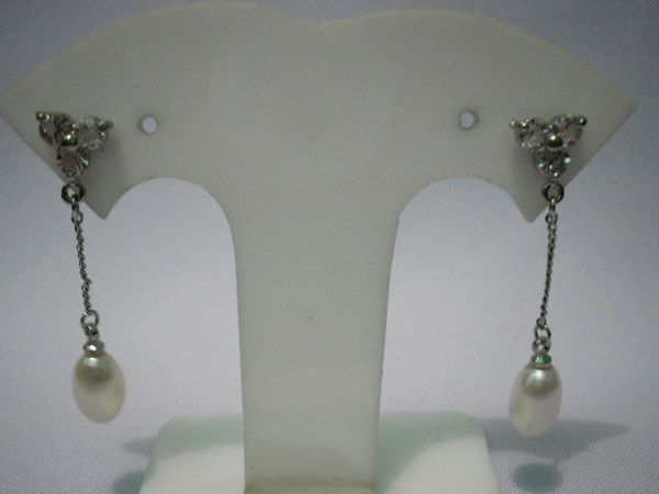 3CZ DANGLING TEARDROP WHITE PEARL EARRINGS **|**|** 3CZ DANGLING TEARDROP WHITE PEARL EARRINGS ; MSRP: $75