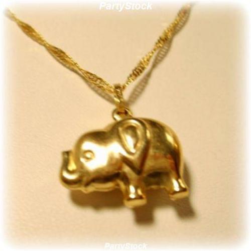 Solid 14 Karat Yellow Gold Necklace features our exquisite, 3D "Puffy" Elephant Pendant with raised trunk for luck! Pendant is 3D (or puffy), so it has no back or front....it looks the same from both sides! Nice and thick, like a little elephant statue. Gorgeous Singapore chain measures 18 Inches. Pendant measures 7/8 Inch square. Click on photos to enlarge and view the detail in this pendant. Exquisite!<P> Necklace weight: 4 Grams <p> This is a brand new item. <p> Please note: our merchandise is guaranteed 100% to your satisfaction. If you DON'T LOVE this item, simply return it for a complete refund of your purchase price. Our feedback is 100% positive, so you can shop with confidence, knowing that your satisfaction is our primary concern. <p> * Insurance is included in our shipping charges.
