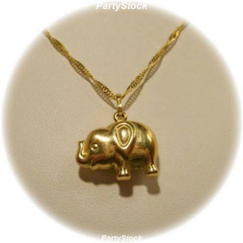 Solid 14 Karat Yellow Gold Necklace features our exquisite, 3D "Puffy" Elephant Pendant with raised trunk for luck! Pendant is 3D (or puffy), so it has no back or front....it looks the same from both sides! Nice and thick, like a little elephant statue. Gorgeous Singapore chain measures 18 Inches. Pendant measures 7/8 Inch square. Click on photos to enlarge and view the detail in this pendant. Exquisite!<P> Necklace weight: 4 Grams <p> This is a brand new item. <p> Please note: our merchandise is guaranteed 100% to your satisfaction. If you DON'T LOVE this item, simply return it for a complete refund of your purchase price. Our feedback is 100% positive, so you can shop with confidence, knowing that your satisfaction is our primary concern. <p> * Insurance is included in our shipping charges.