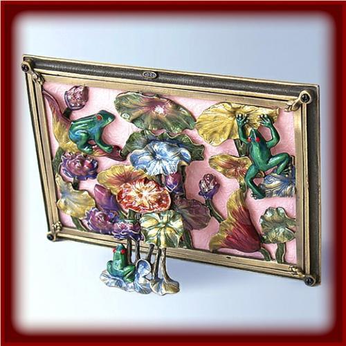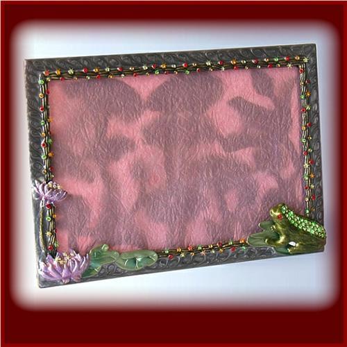 MUST CLICK ON PHOTOS BELOW TO ENLARGE AND VIEW DETAIL OF BOTH THE FRONT AND THE BACK! THIS FRAME IS A WORK OF ART IN ITSELF! DETAILED WITH 24K GOLD AND EXPENSIVE, GENUINE, SWAROVSKI CRYSTALS, THIS PHOTO FRAME HAS A DELIGHTFUL FROGS AND FLOWERS THEME. TRULY EXQUISITE!